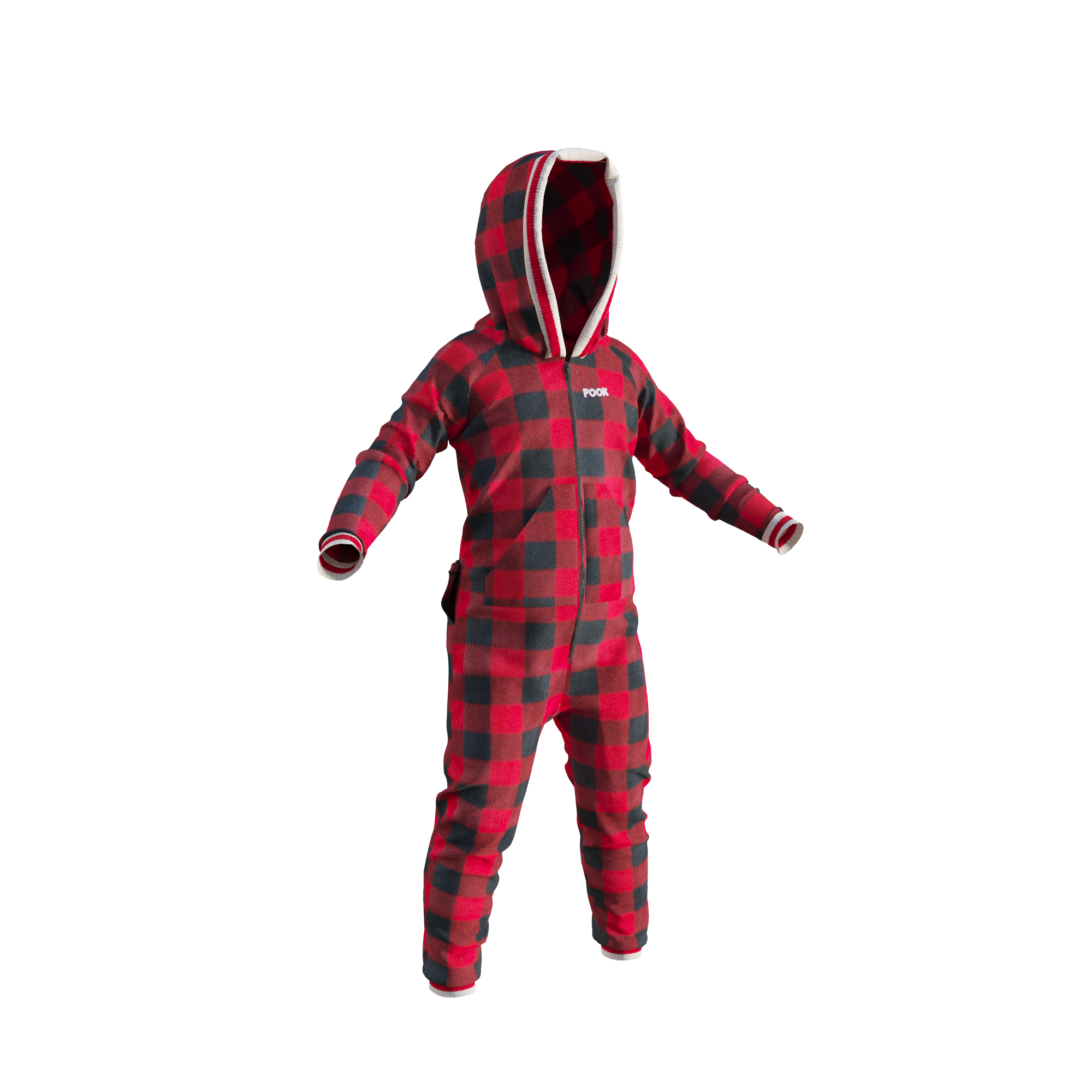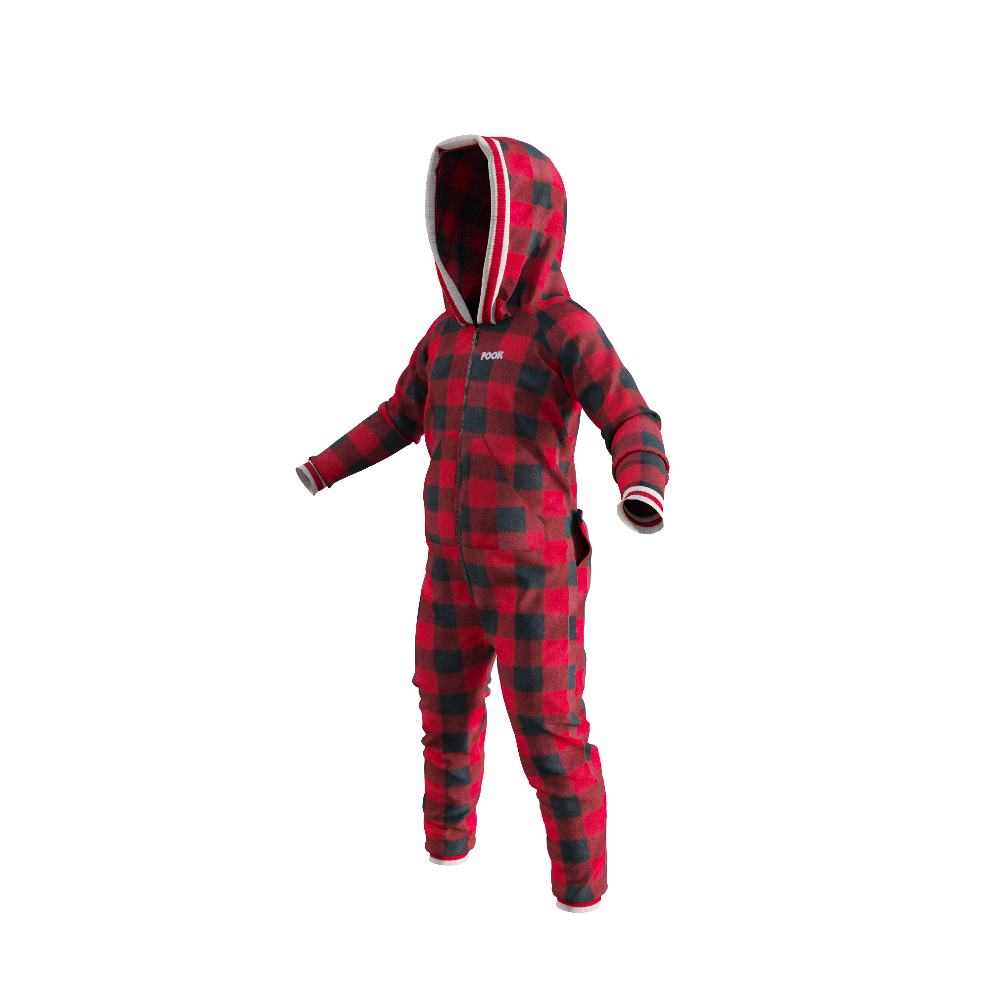 The Pook Onesie is more than pajamas. It's a lifestyle with 100% polar red plaid fleece, an embroidered logo, and form fitted ribbed ankle & wrist cuffs for ultimate comfort.