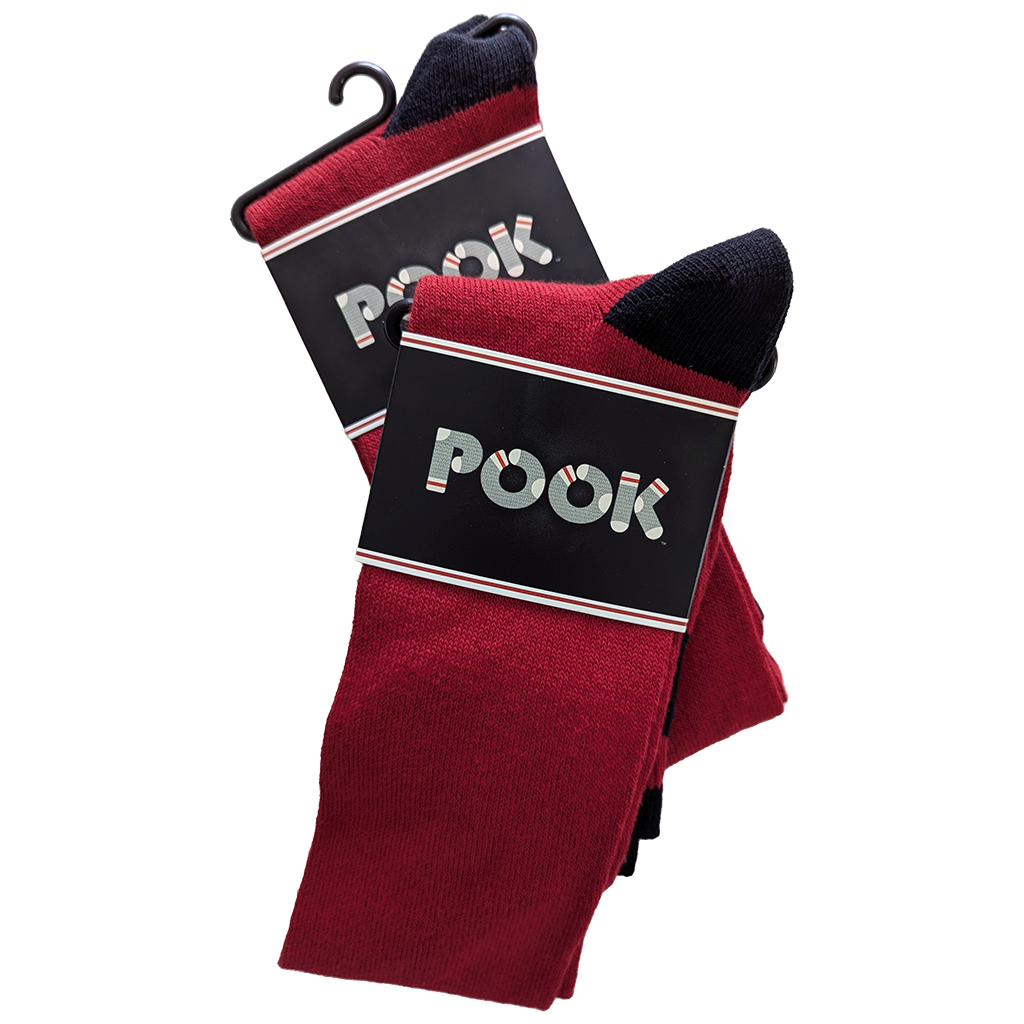 Pook Thigh Highs are a Cotton, Polyester material that is soft to the touch and stays up your leg all day long.  We love them!